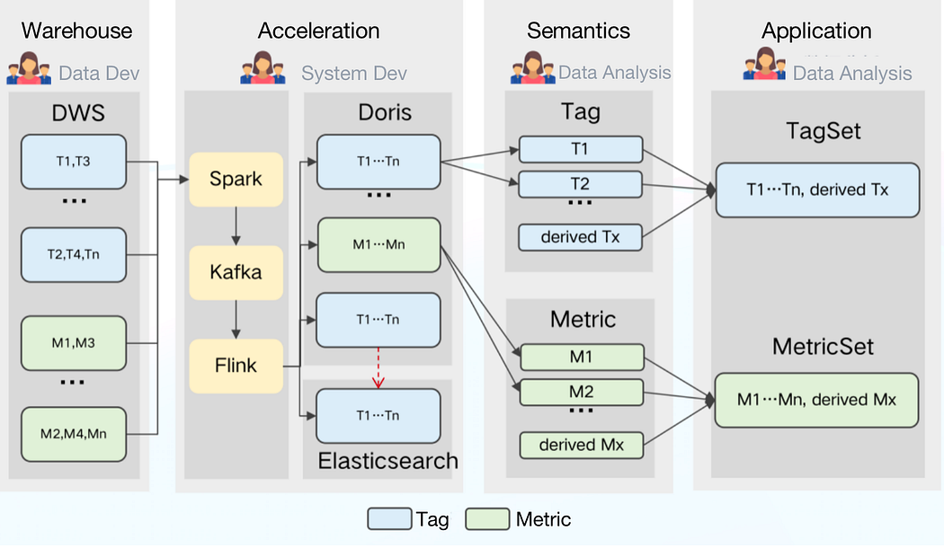 After that, our data analysts used the data under the tags and metrics they needed to form datasets for different usage scenarios, during which they could create their own tags and metrics.